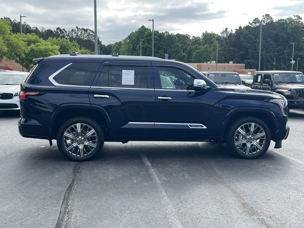 Check out this pre-owned 2024 Toyota Sequoia we recently got in. This Toyota includes: BLACK/WHITE, SEMI-ANILINE LEATHER SEAT TRIM Leather Seats *Note - For third party subscriptions or services, please contact the dealer for more information.* If you're going to purchase a pre-owned vehicle, why wouldn't you purchase one with CARFAX one-owner report. This SUV is a superb example of what a tough, work focused vehicle should be. Exceptional towing, acceleration and torque will help you get the job done. Quality and prestige abound with this Toyota Sequoia Capstone. Taking the road less traveled has never been more fun than with this 4WD. With improved performance, mileage and acceleration, this 2024 4WD Toyota Sequoia Capstone is king of the off-road. This low mileage Toyota Sequoia has barely been touched. It's the next best thing to buying new. Added comfort with contemporary style is the leather interior to heighten the quality and craftsmanship for the Toyota Sequoia Capstone. This Toyota Sequoia Capstone is in great condition both inside and out. No abnormal wear and tear.