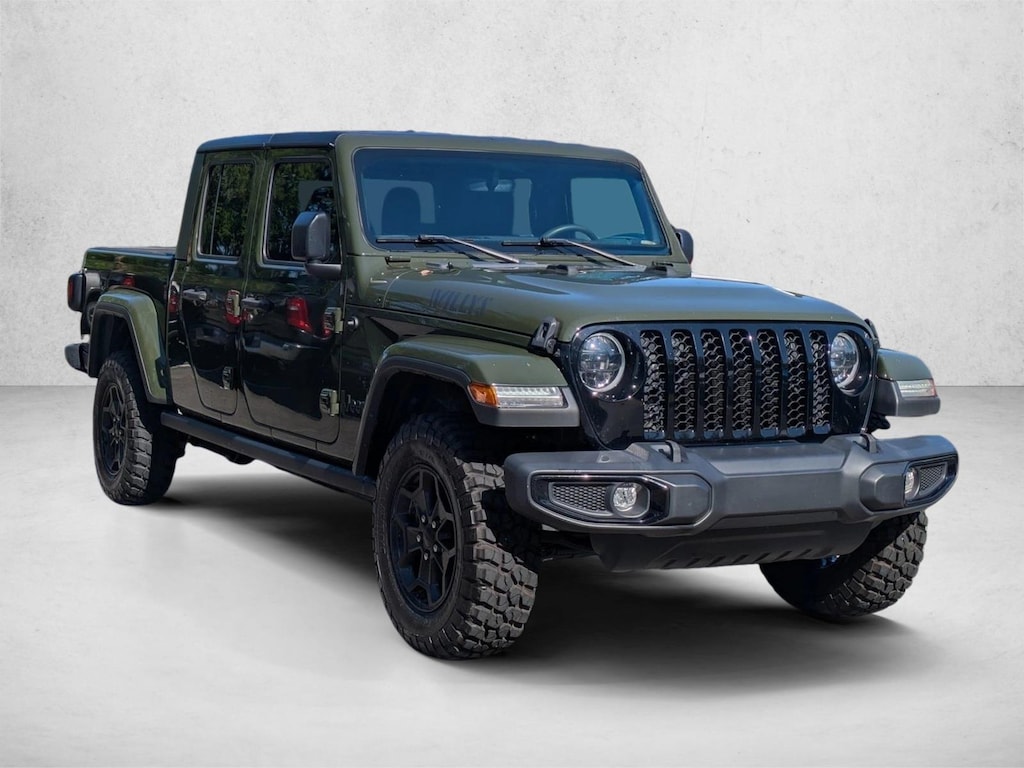 You can find this 2023 Jeep Gladiator Willys Sport and many others like it at AutoNation Chrysler Dodge Jeep Ram Hilton Head. When Jeep created this vehicle with 4 wheel drive, they immediately enhanced the performance ability. Easily switch between two and four wheel drive to take advantage of the improved traction. This 2023 Jeep Gladiator has such low mileage it has been parked more than driven. You could keep looking, but why? You've found the perfect vehicle right here. Surprising quality accompanied by a high level of performance...this Sarge Green Clearcoat on Black Jeep Gladiator Willys Sport could end up being the perfect match for you.